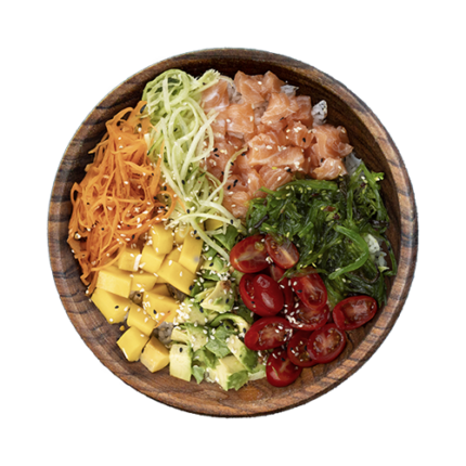 (Saumon, concombre, carotte, mangue, avocat, tomate cerise, wakame spécial)