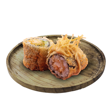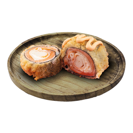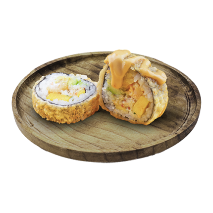 Saumon, surimi, avocat, cheese, tobiko, mayonnaise épicée