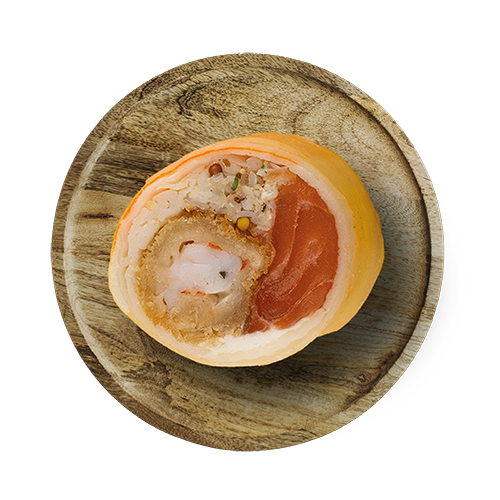 gambas, cheese, crabe, surimi, tobiko, saumon