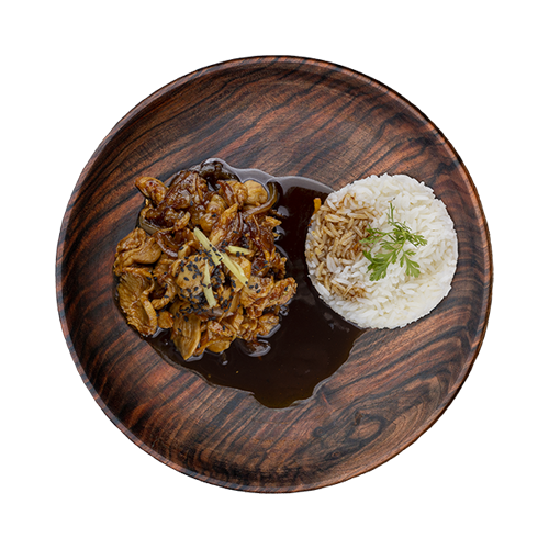Poulet, oignon, gingembre frais, riz nature
